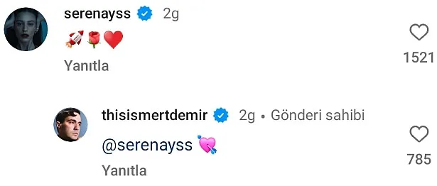 Şarkıcının bu paylaşımına Sarıkaya kalp emojisiyle yorum yaparak ‘Ayrılık yok’ mesajı verdi.